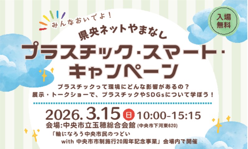 イベント情報 【ふるさと納税分科会】事業者勉強会を開催しました! 190社以上の企業が参加!県内最大の合同企業説明会開催! 10代・20代向け!知って得する!未来の自分!「ライフデザインセミナー」 県央ネットやまなし「プラスチック・スマート・キャンペーン」 交流イベント「美味しい料理ビュッフェ恋活」 大規模婚活イベント「結婚式場の豪華スイーツ婚活」 MIRAITOやまなし将来発見バスツアー 県央ネットやまなしメタバース合同企業説明会 県央ネットやまなし「空き家相談セミナー」 甲府市×ハローキティきらめきスタンプラリー2025 地域課題探究コンペティション 【中止】令和7年度 YAMAP(ヤマップ)×県央ネットやまなし「山のぼり・まち歩き」キャンペーン 【終了】ACP普及啓発講演及びトークセッション「話しておこう、大切なことを、大切な人と。」 【終了】県央ネットやまなし住民向けひきこもり支援講演会 【終了】まなびのSDGs in 2050 Zero Carbon Cities@イオンモール甲府昭和 【終了】令和7年度「県央ネットやまなし合同企業説明会」を開催します! 【終了】「県央ネットやまなし 消費生活展2025」を開催します! イベント情報一覧を見る 県央ネットやまなしとは? 山梨県内の9市3町(甲府市、韮崎市、南アルプス市、甲斐市、笛吹市、北杜市、山梨市、甲州市、中央市、昭和町、市川三郷町、富士川町)が連携 して構成する県央ネットやまなし(やまなし県央連携中枢都市圏) では、各地域の個性を互いに尊重しながら連携・協力を一層深めてスクラムを組み、圏域全体の経済の成長と、圏域の住民全体の豊かで快適な暮らしの実現に向けて、様々な取り組みを行っております。 県央ネットやまなしについて 構成市町 甲府市 韮崎市 南アルプス市 甲斐市 笛吹市 北杜市 山梨市 甲州市 中央市 昭和町 富士川町 市川三郷町 お知らせ 現在、お知らせはございません。 お知らせ一覧を見る RSS 関連サイト